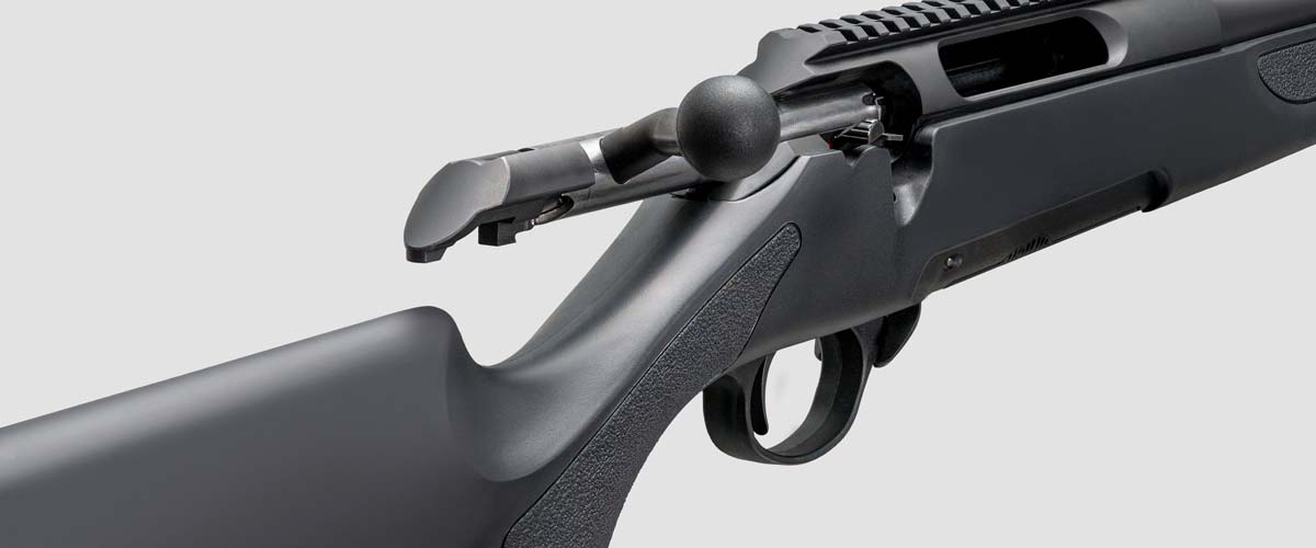 Alles auf Funktion optimiert: Robuster, gerader Kunststoffschaft ohne Backe und mit Gummischaftkappe. Der Schaft ist für hohe Widerstandsfähigkeit gegenüber Stößen und Witterungseinflüssen ausgelegt und bleibt auch unter anspruchsvollen Einsatzbedingungen formstabil und zuverlässig.